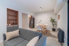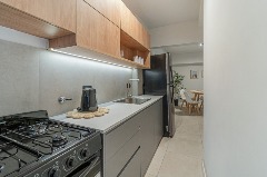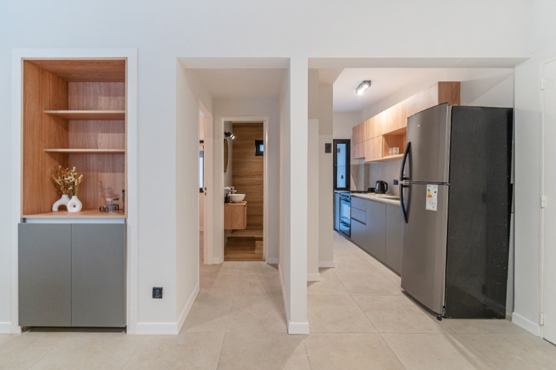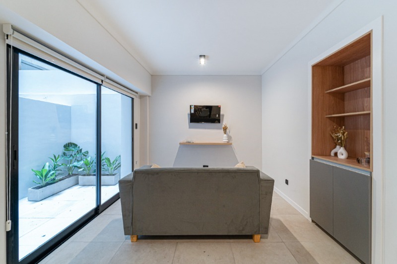 Se entrega totalmente amoblado y equipado, tal como se ve en las fotos, incluyendo heladera con freezer, mesa con cuatro sillas, sillón de dos cuerpos, espejo, sommier de dos plazas con respaldo y mesa de luz, ropa de cama, cortinas, modular, dos televisores, iluminación y elementos de decoración.