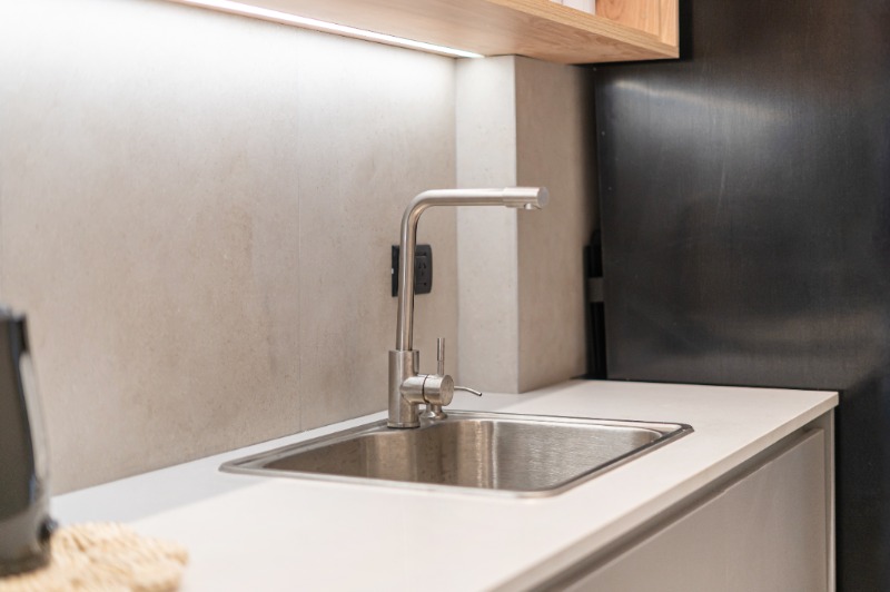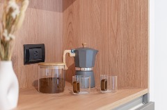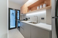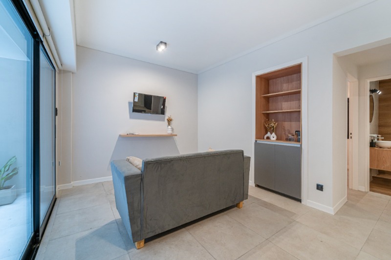 El departamento dispone de living comedor amplio con mucho espacio de guardado y salida al balcón. El sector dormitorio cuenta con sommier de dos plazas con respaldo, mesa de luz, modular, placard y TV, también con salida al balcón. Posee cocina eléctrica equipada y baño completo con ducha.
