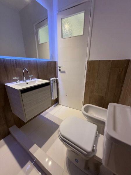 El baño principal es completo, con ventilación natural, espejo con luz LED, sanitarios Ferrum y extractor. Además, posee un toilette de servicio. La obra de gas está realizada a nuevo y la calefacción es por radiadores en todos los ambientes. La unidad tiene una superficie de 60 metros cuadrados.