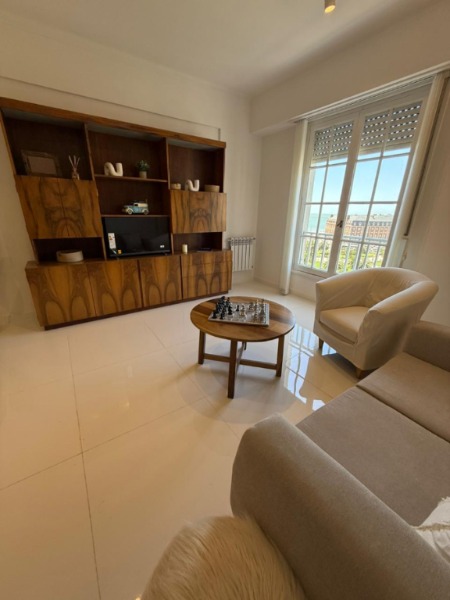 Departamento de 2 ambientes con dependencia y dos baños, totalmente reciclado a nuevo, ubicado a la calle con vista al mar y a Plaza Colón, entre Colón y Bolívar. Cuenta con un amplio living comedor con vista panorámica, una cocina muy espaciosa con mesadas en ambos laterales y un dormitorio con pisos de parquet pulidos, lustrados y plastificados, placard de seis hojas y sommier de dos plazas. También dispone de una dependencia de servicio con cama individual.